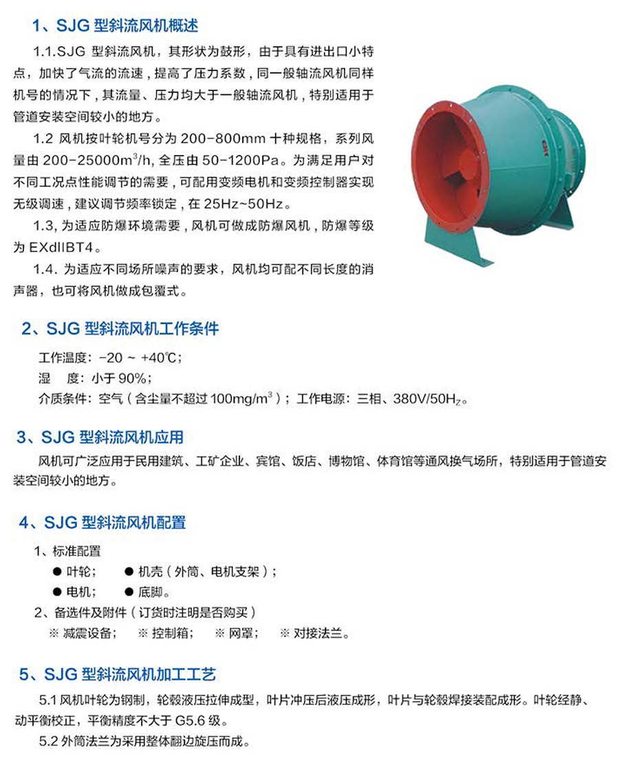 斜流風機又名混流風機,是介于軸流風機和離心風機之間的風機,斜流風機的葉輪讓空氣既做離心運動又做軸向運動,殼內(nèi)空氣的運動混合了軸流與離心兩種運動形式。斜流風機主要部件為:電機、葉輪、外筒、內(nèi)筒、導葉、底腳等等. 配套部件;斜流風機消音器,有效解決噪音問題,具有壓力高、風量大、高效率、結(jié)構(gòu)緊湊、噪音低、體積小、安裝方便等。