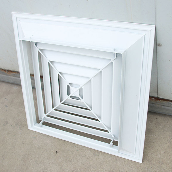方形散流器(鋁合金散流器)優(yōu)點(diǎn)及適用范圍:氣流屬貼附(平送)型,適用于播音室、醫(yī)院、劇場(chǎng)、教室、音樂(lè)廳、圖書館、游藝廳、劇場(chǎng)休息廳、一般辦公室、商店、旅館及體育館等。為了使人們?cè)诟鞣N環(huán)境下避免噪音的干擾以及不適感,除了按性能表確定頸部風(fēng)速外,還需要考慮安裝高度及安裝場(chǎng)合。方型散流器使用該類型散流器時(shí)要與調(diào)節(jié)閥配合使用,才能在系統(tǒng)中得到理想的氣流分布。此風(fēng)口的葉片角度為固定式,不能隨意調(diào)節(jié),整個(gè)葉片與邊框采用分離結(jié)構(gòu) (即葉片可以從邊框內(nèi)取下,安裝好邊框后再裝上葉片),以方便安裝與調(diào)節(jié)。