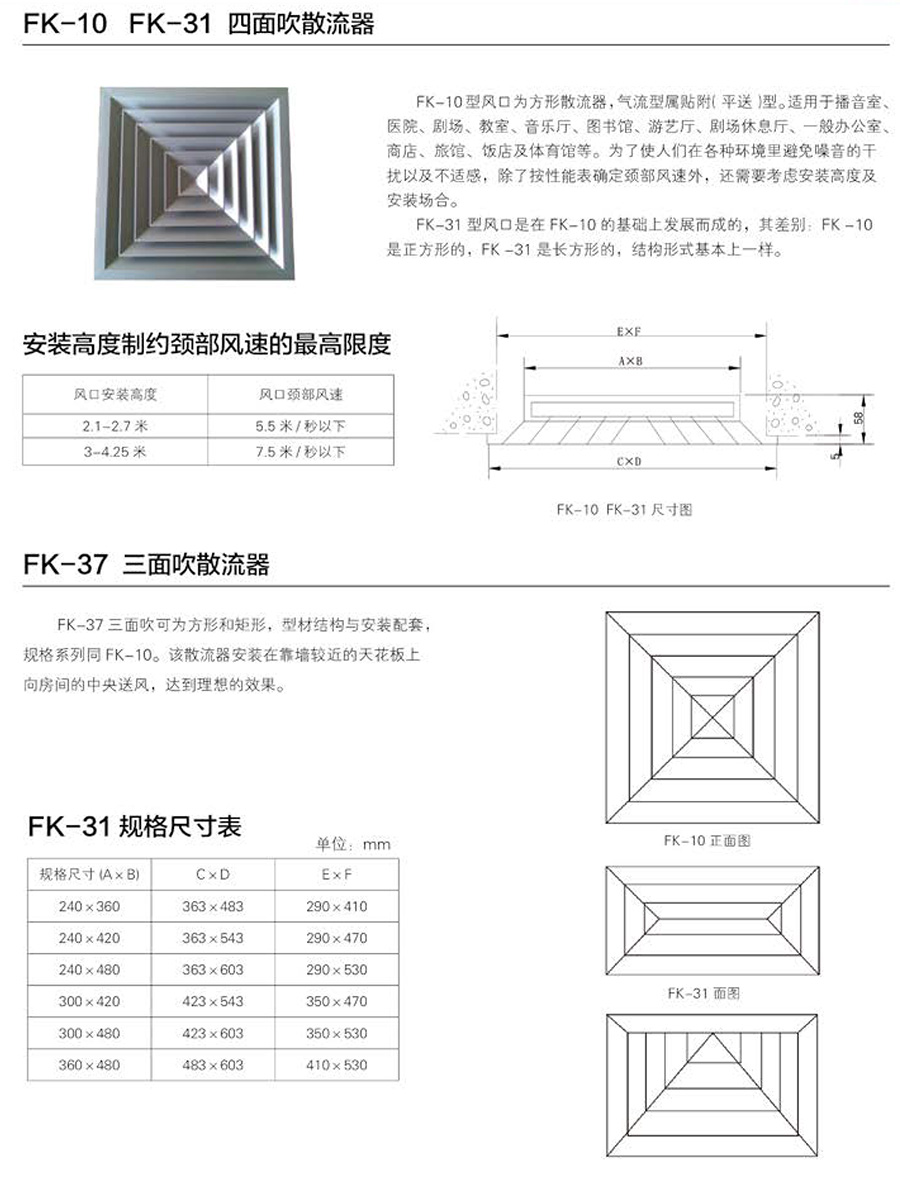 圓形散流器一般用于冷暖送風(fēng)。通常安裝在頂棚上。圓形散流器 專業(yè)生產(chǎn)各種方形散流器、圓形散流器、百葉風(fēng)口 圓形散流器一般用于冷暖送風(fēng)。通常安裝在頂棚上。其吹出氣流呈貼附(平送)型,其結(jié)構(gòu)為多層錐面形。由于室內(nèi)誘導(dǎo)氣流大于排風(fēng)量,因此吹出氣流減速較快。因此相對(duì)任意大小面積來說可以供給較大風(fēng)量,而且在給定的風(fēng)量范圍內(nèi)擴(kuò)散半徑的大小變化。
