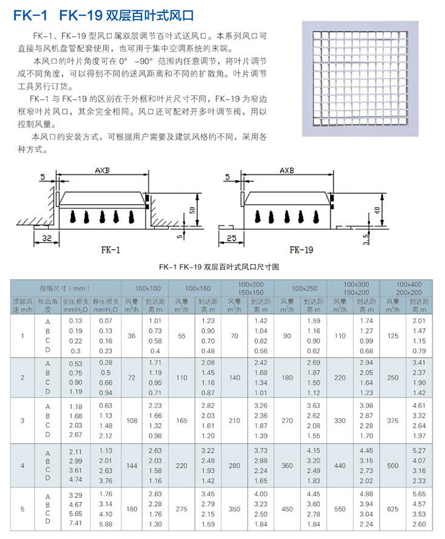 雙層百葉風(fēng)口,廣泛應(yīng)用于空調(diào)系統(tǒng)中作送風(fēng)口,根據(jù)使用要求,風(fēng)口后面可配制鋁制風(fēng)量調(diào)節(jié)閥(人字閘),雙層百葉風(fēng)口具有兩層相互垂直頁片調(diào)節(jié)水平和垂直頁片的角度,調(diào)整氣流擴散面,以改變射程,風(fēng)口的外框?qū)挾扔袑掃吙蚝驼吙騼煞N,可用于特殊要求的通風(fēng)系統(tǒng)中。