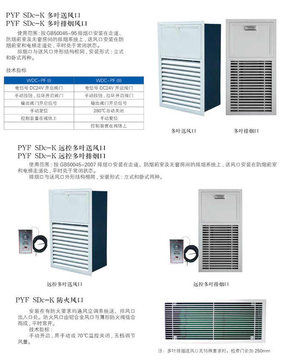 主要特點:平時常閉,電動、手動開啟。 輸出開啟動信號。 手動復(fù)位關(guān)閉。 280℃溫感器動作,閥門重新關(guān)閉。 采用薄形機構(gòu),縮小操作箱尺寸,提高有效通風(fēng)排煙面積。